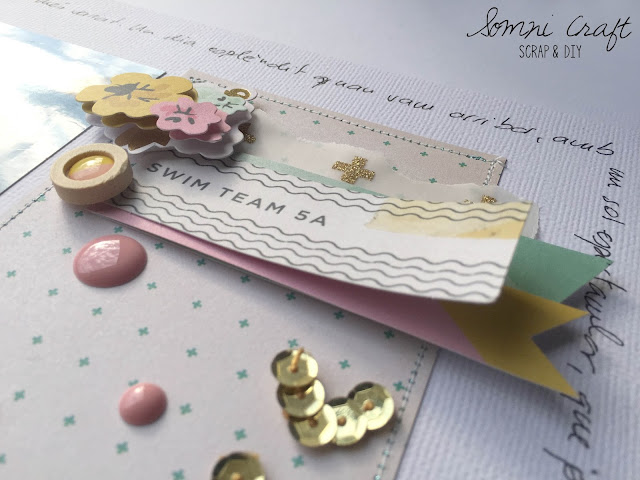 Pues bien, tenia la colección Poolside de Crate Paper desde hace algo más de un mes, ya que fue la colección que usé para mi colaboración como DT invitada en Kimidori (aquí). Pero para esa colaboración dejé de usar aquellos papeles y embellecedores que fueran 100% veraniegos, así que, arrinconados en mi mesa, estaban pidiendo a gritos ser usados.